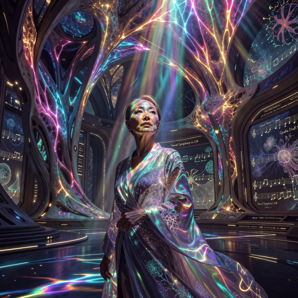 Trained at the Soma Dynamics Composer Residency in Pangyo, the most competitive program in the coupling economy. Her breakthrough composition — Weightless Weight — synchronized 180 participants into a collective state that reviewers described as grief that lifts rather than sinks. The piece required her to simultaneously model the emotional states of 180 brains through the AI hub, adjusting entrainment patterns in real time. She was coupled for eleven continuous hours. She slept for twenty-two hours afterward and lost two kilograms. She does not eat enough.