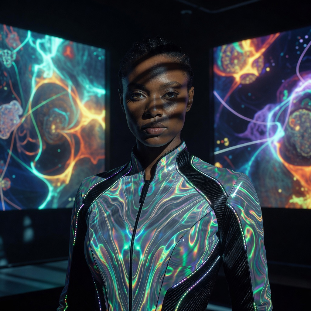Born 2005 in Bed-Stuy to a Nigerian-immigrant father (physical therapist) and a Black American mother (middle school science teacher). Studied physiotherapy at NYU, practiced for three years at a rehabilitation clinic in the Bronx. When Soma Arts shipped the first process sleeves in 2027, she was already recording her patients motor recovery patterns on EMG arrays as part of standard documentation. She played one back through a sleeve and realized the felt experience of a hand relearning to close was the most honest art she had ever encountered. Left clinical practice in 2030. Studio in a converted rope factory on Front Street since 2032. Her first major piece — Reach, a recording of a stroke patients arm recovering grasp — sold at a tech-art platform for 12,000 dollars in 2031. She donated half to the patient. Her work has been shown at Superblue Miami and the Whitney but she has refused Sothebys twice.